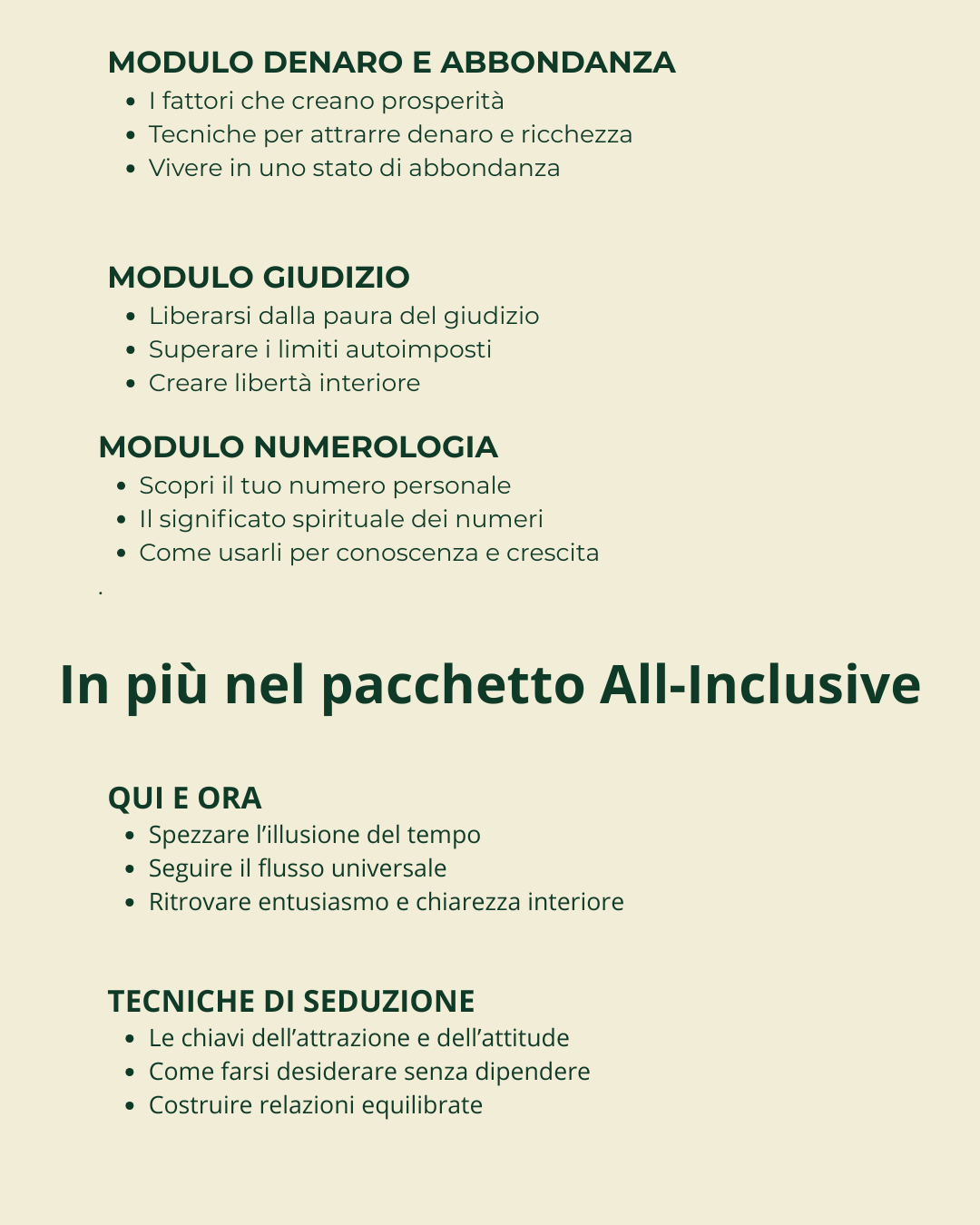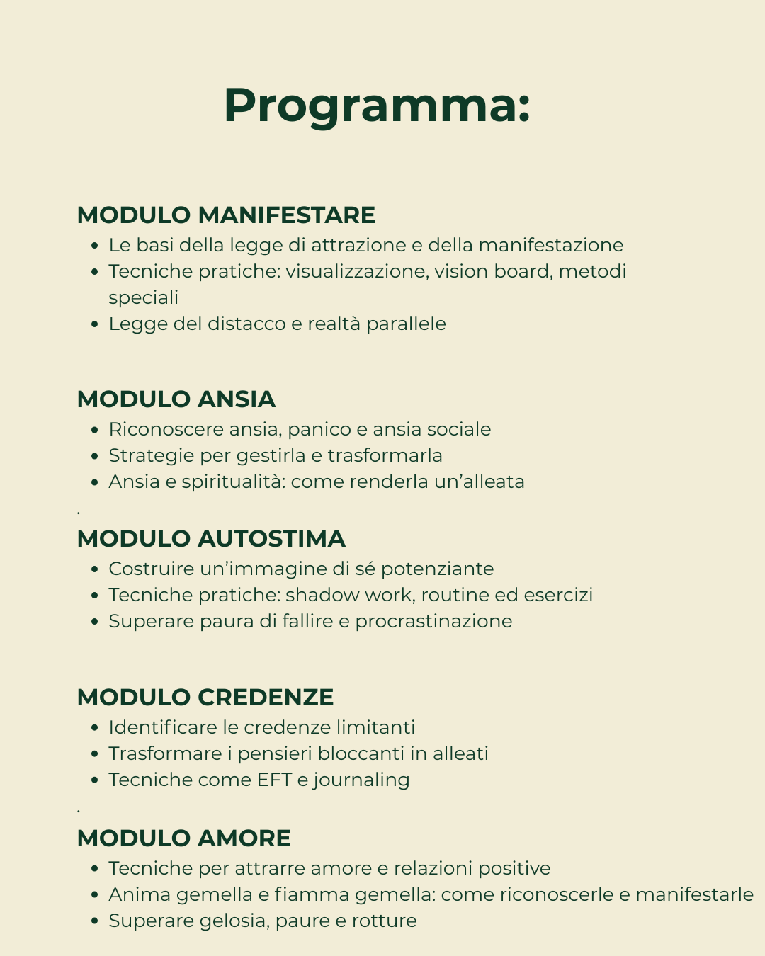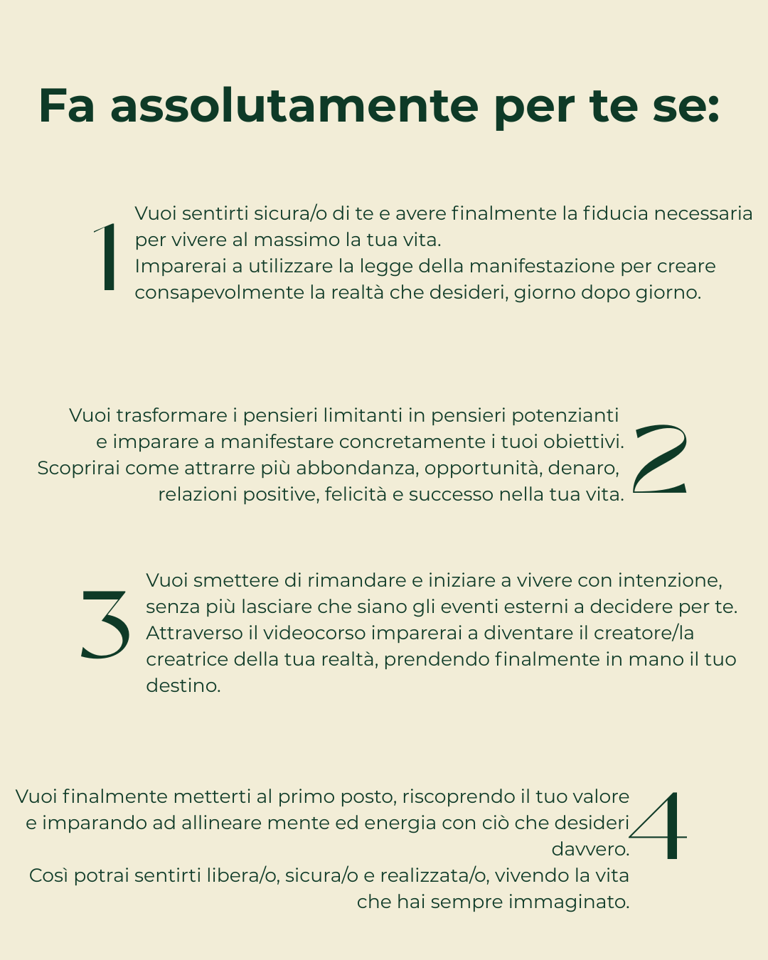 Questo videocorso è la tua “fiamma interiore”: uno spazio dedicato esclusivamente a te, alla tua crescita e al tuo benessere, per imparare ad attrarre tutto ciò che desideri nella vita